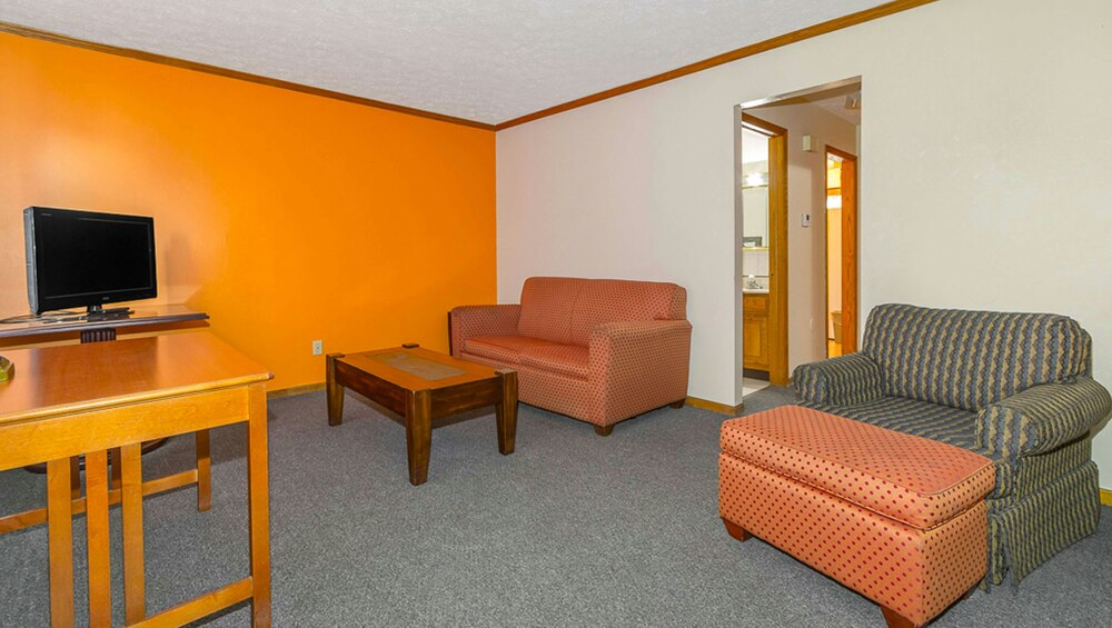Our spacious Nonsmoking King Suite features a kitchen, a living or sitting area and comfortable king size bed. Your suite's kitchen includes a stove cook top with oven, refrigerator, a microwave, dishwasher, kitchen sink, and coffee maker for your convenience. Other modern amenities in your suite include a sofa or chairs, dining area, free WiFi, DVD player, flat screen cable TV, individually controlled air conditioning with heat, telephone with free local calls, daily housekeeping, iron with ironing board, and a private bathroom with toiletries and hair dryer.