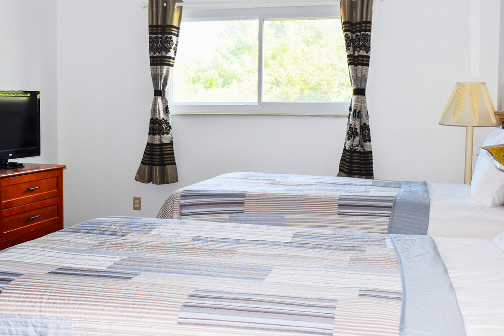 The family friendly Non smoking 2 Double Beds Suite features a kitchen, a living or sitting area and comfortable two double size beds. Your suite's kitchen includes a stove cook top with oven, refrigerator, a microwave, dishwasher, kitchen sink, and coffeemaker for your convenience. Other modern amenities in your suite include a sofa or chairs, dining area, free WiFi, DVD player, flat screen cable TV, individually controlled air conditioning with heat, telephone with free local calls, daily housekeeping, iron with ironing board, and a private bathroom with toiletries and hair dryer.